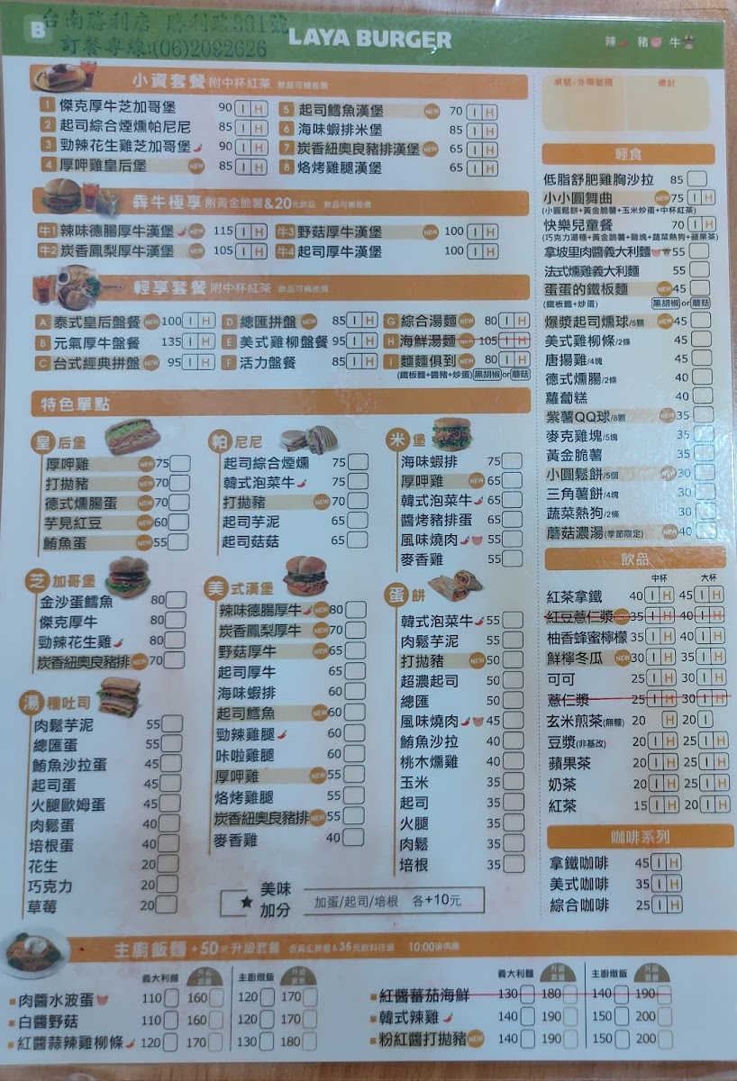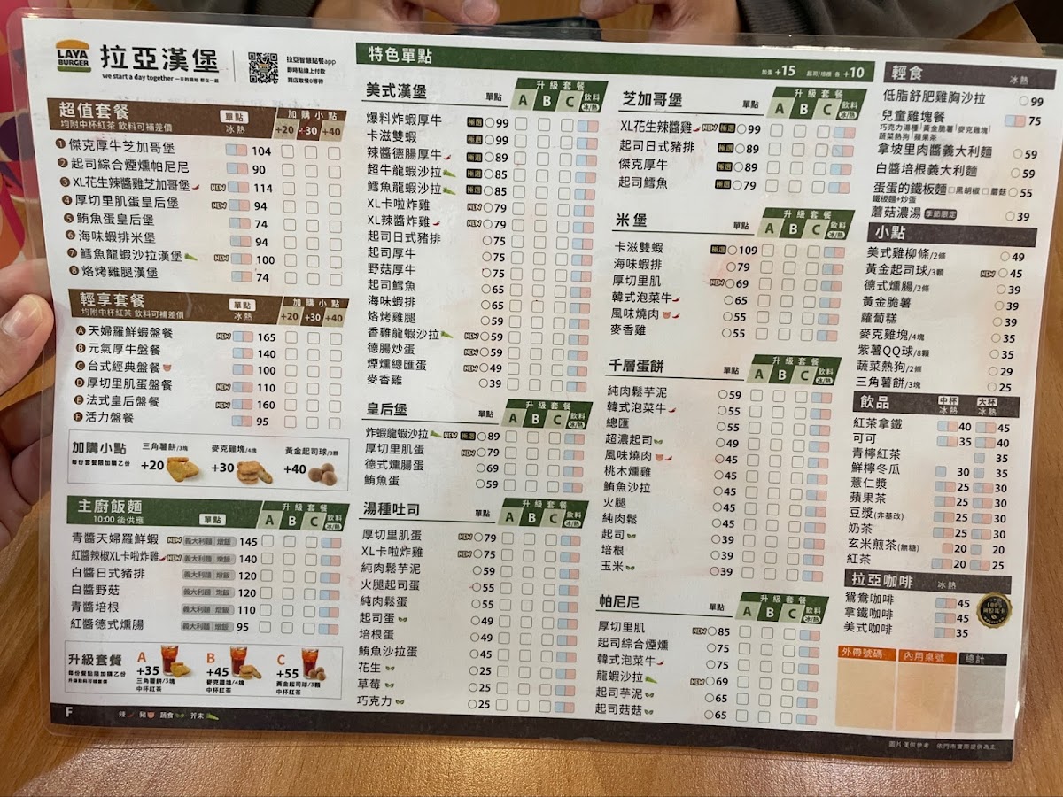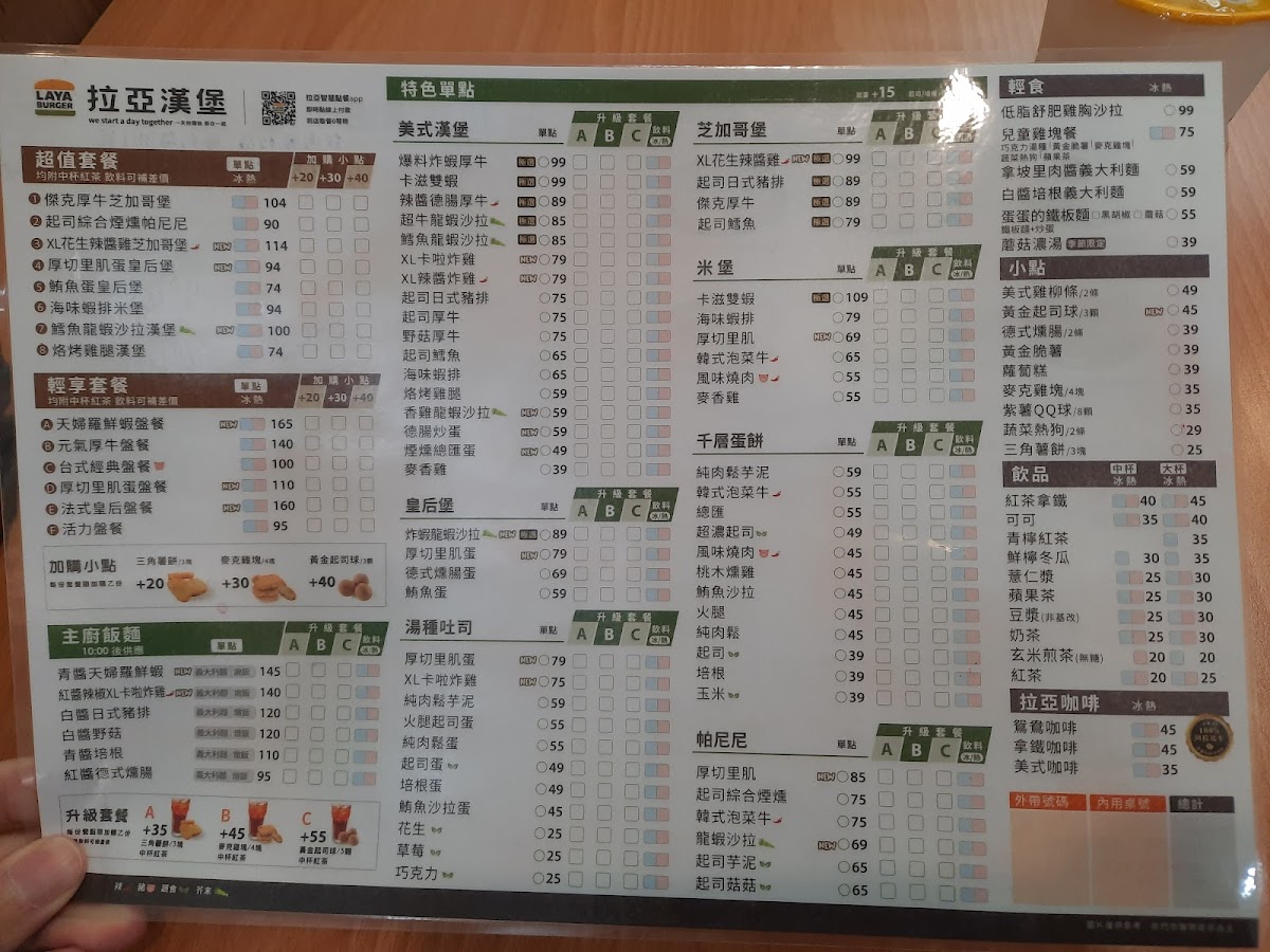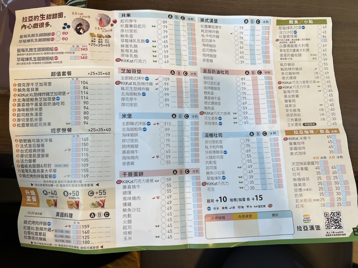 The menu at Laya Burger (Tainan Shengli) impresses with its bold flavors and creative twists on classic fast-food favorites. Signature items like the XL花生勁辣炸雞芝加哥堡 stand out for their generous portions and spicy kick, while the indulgent KITKAT巧克力XL勁辣炸雞芝加哥堡 offers a unique fusion of sweet and savory that’s both playful and satisfying. For sides, the 三角薯餅【3塊】 provide a crisp, comforting complement to the main dishes, and the 德式燻腸【2條】 add a smoky, hearty touch. Beverages like the 紅茶【大杯】 round out the meal with a simple, refreshing option. Overall, the menu balances familiar favorites with inventive choices, making each visit an opportunity to try something bold and memorable.